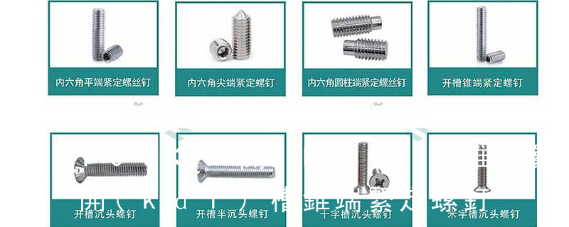開(kāi)槽錐端緊定螺釘 Slotted set screws with cone point 六角螺母 Hexagon nuts 方螺母-C Square nuts 六角頭螺釘 Hexagon screws 六角頭圓柱端 緊定螺釘 Hexagon set screws with full dog point 薄型方螺母-B Square