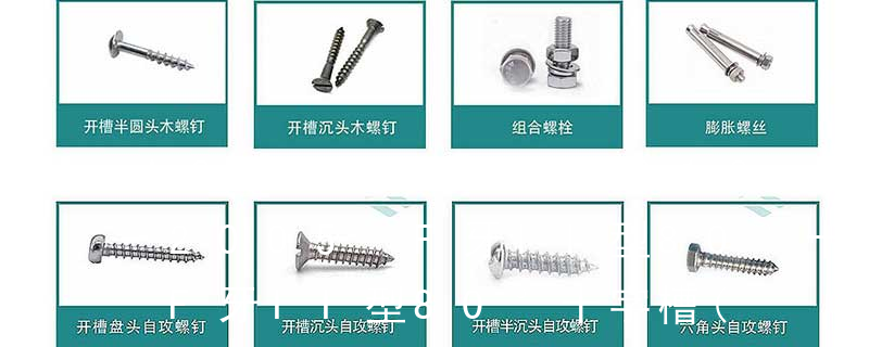 (鐵板牙自攻螺絲) B-2: Plastic Tapping Screw. (塑膠用,自攻螺絲) C: Wooden Screw : 木工螺絲 D: Drywall Screw :水泥墻螺絲 E: Self Drilling Screws鉆尾螺絲(不銹鋼鉆尾螺絲,復(fù)合材料鉆尾螺絲) F:膨脹螺絲,四片膨脹螺絲又